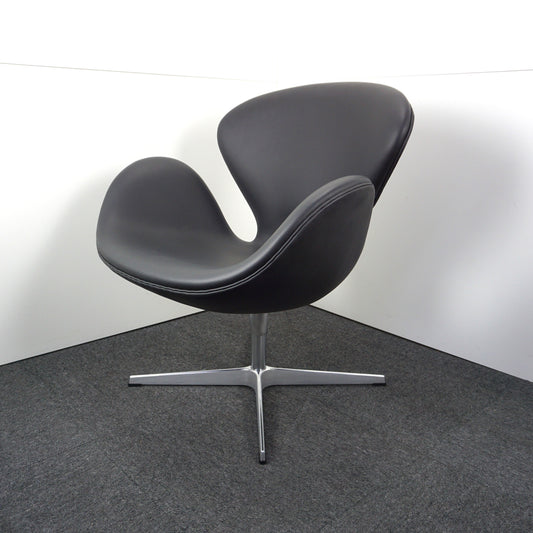 Fritz Hansen Swan Chair Design Stoel | Zwart Leer | Nieuw gestoffeerd