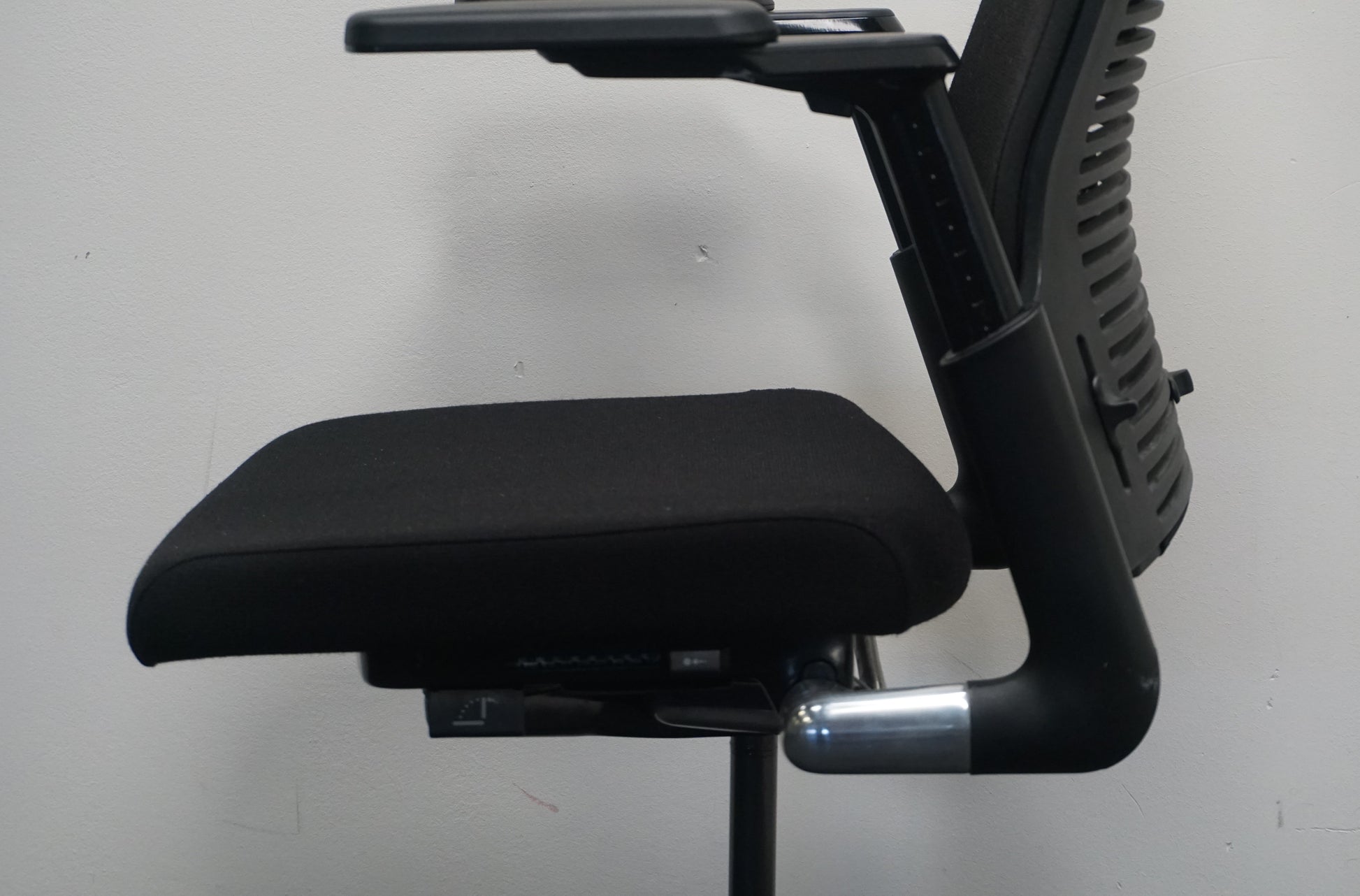De stoel is voorzien van een synchroonmechaniek met kantelbare rug, verstelbare zithoogte en zitdiepte, instelbare gewichtsregeling en een geïntegreerde lendesteun voor optimale ondersteuning. De 3D-verstelbare armleggers en het zwarte kunststof voetkruis maken het geheel compleet.