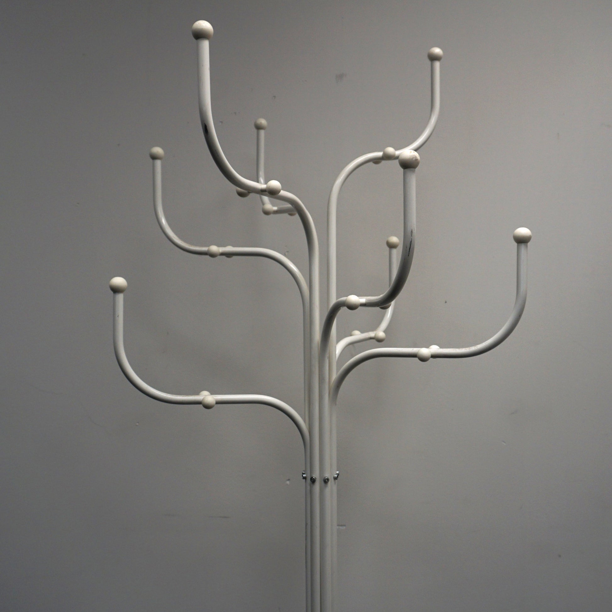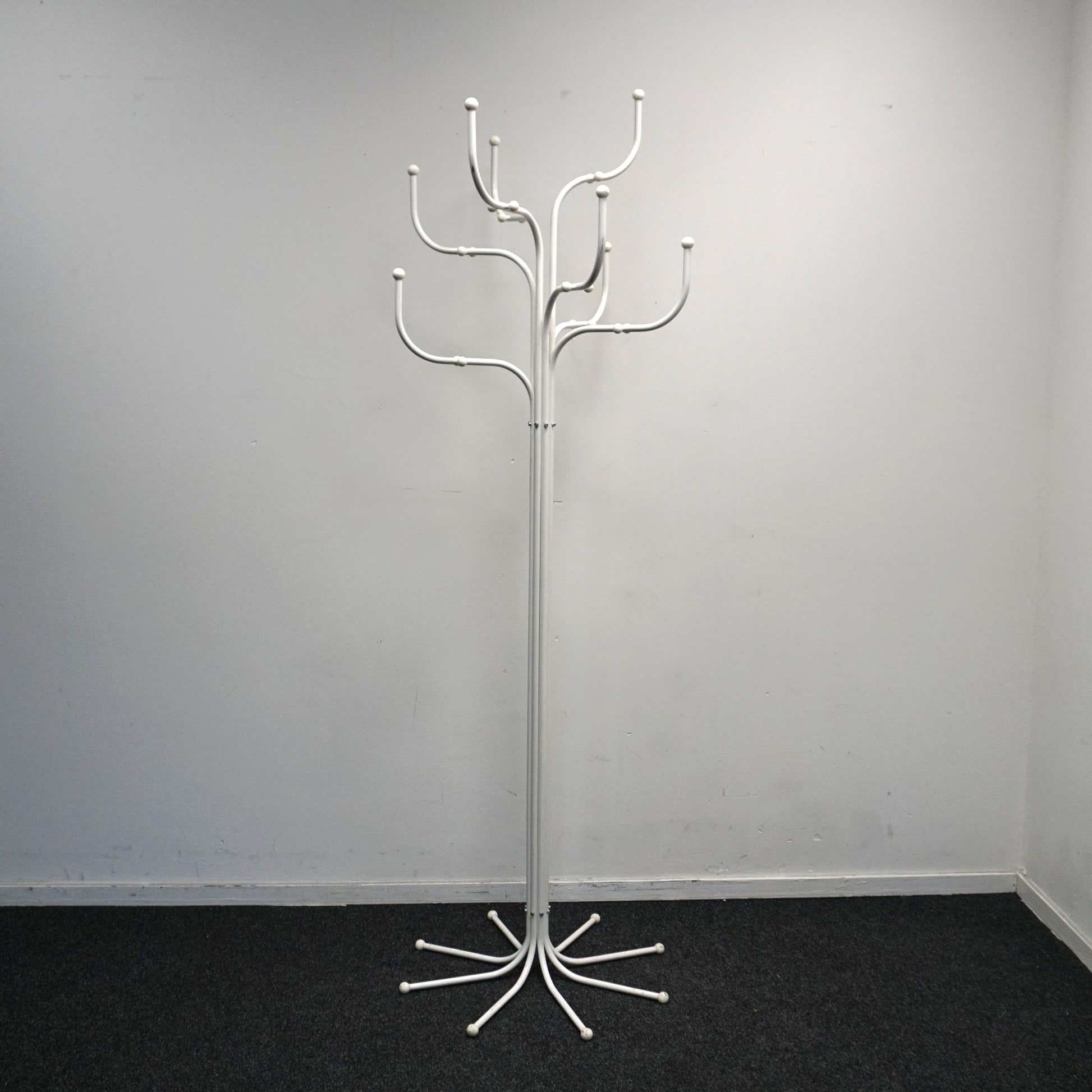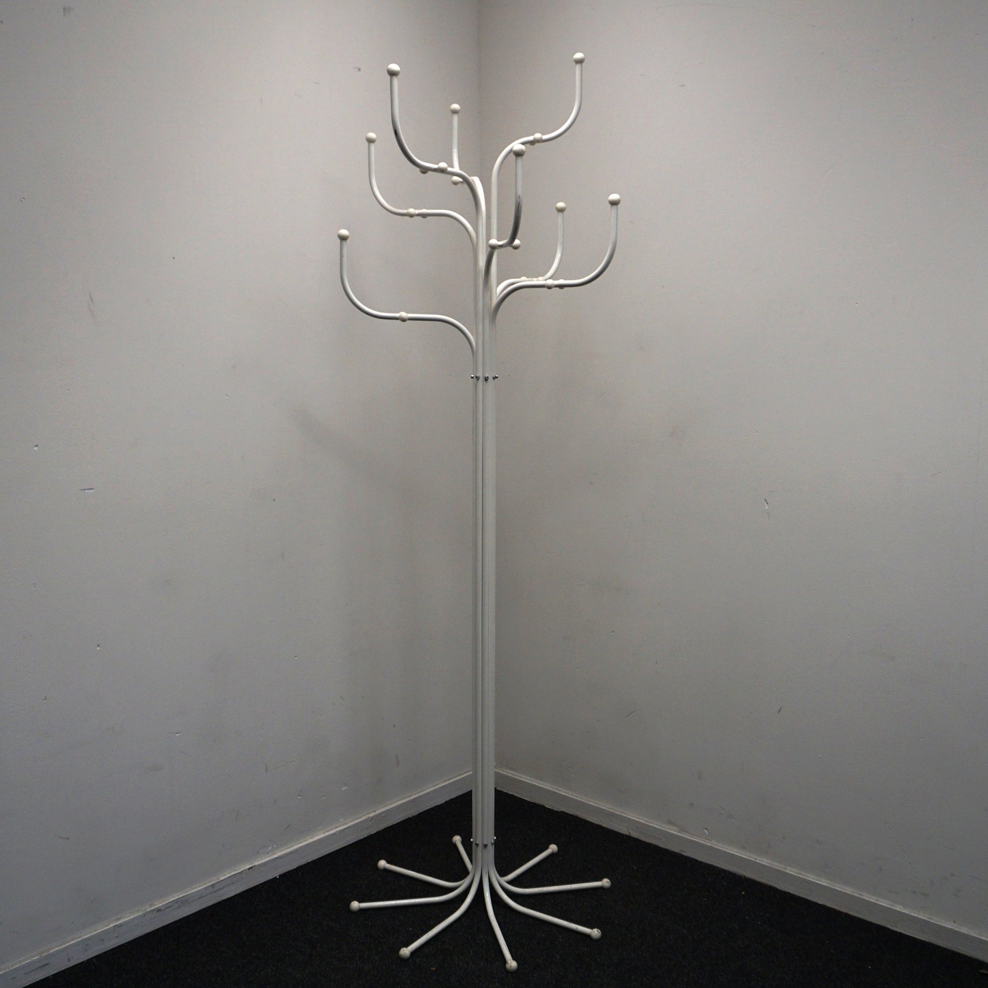 De kapstok ziet er bijzonder opvallend uit met zijn tak-achtige armen. Hij biedt ruimte voor jassen, jas, mutsen, sjaals of zelfs paraplu's en nog veel meer. De Coat Tree is opgebouwd uit acht gebogen stalen buizen die naar boven toe uitlopen. Deze buizen zijn zo gesitueerd dat er een boomachtige silhouet is ontstaan.